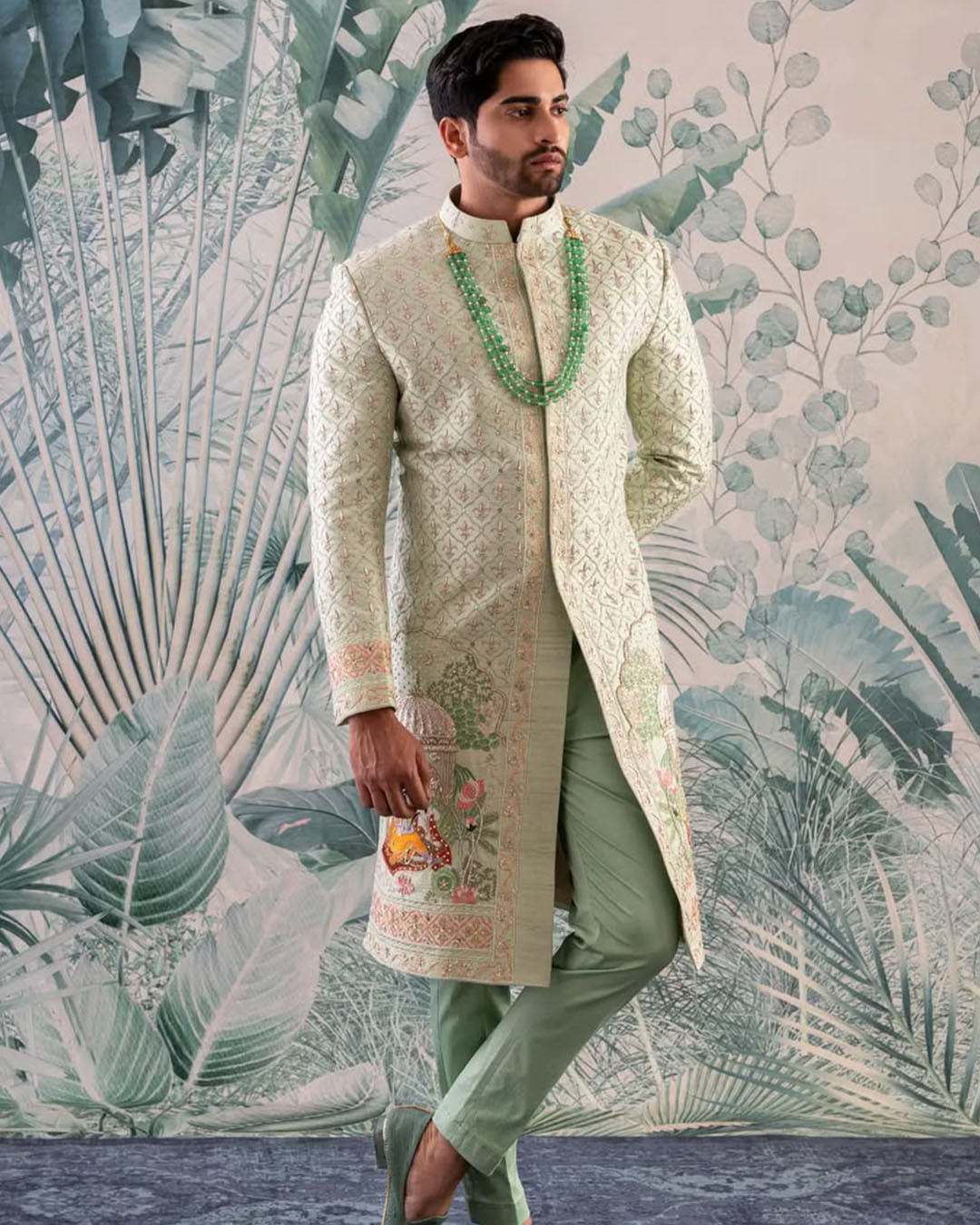 Components: 2(Bandhgala jacket, monotone silk pants)