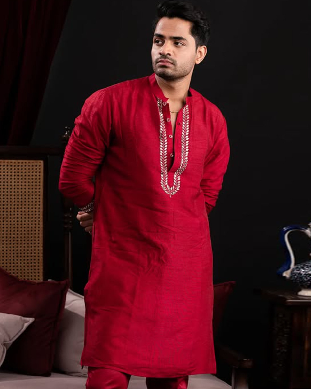 Components: 2(Sherwani, monotone silk pants)