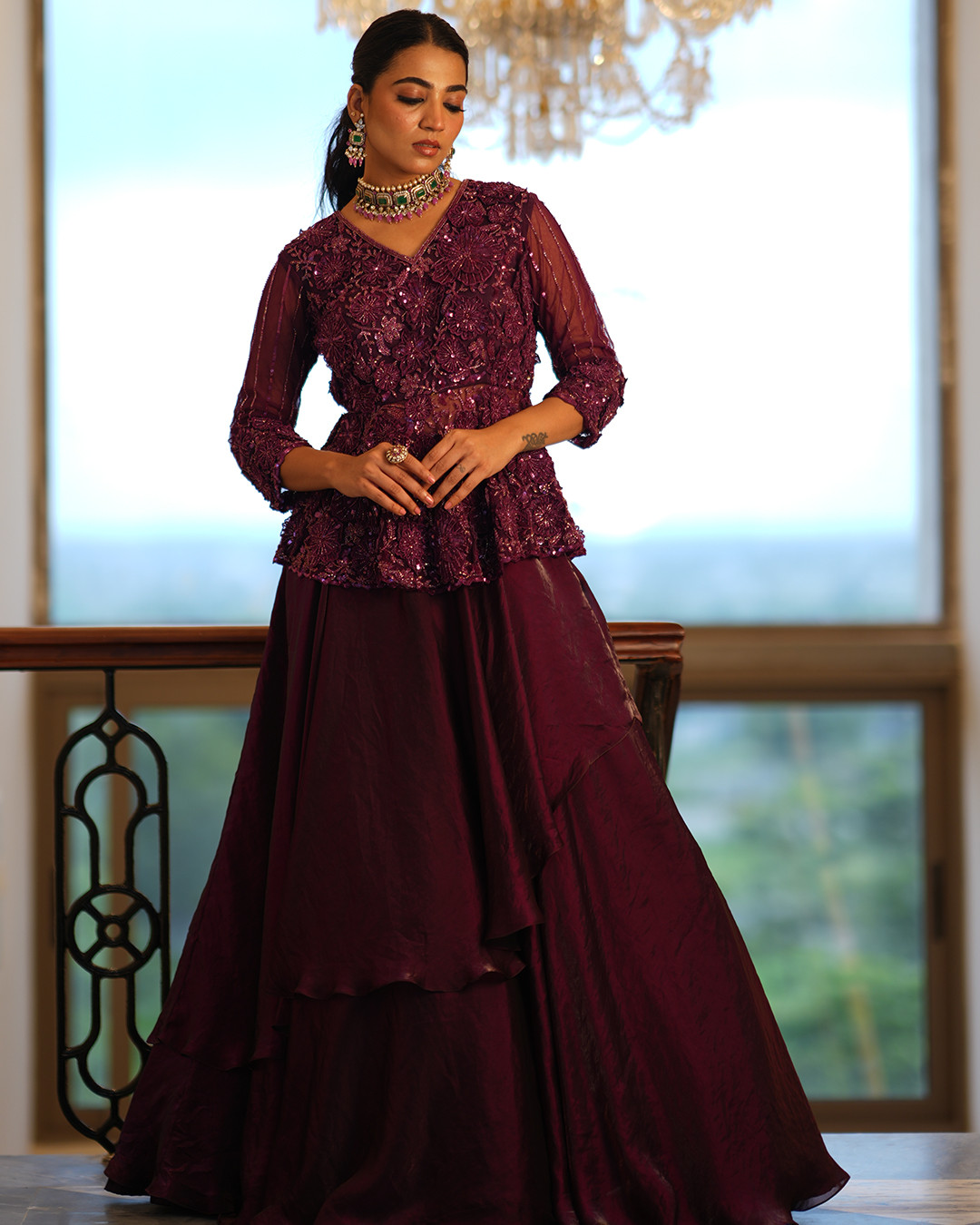 Embroidery: Intricate zardozi and beadwork